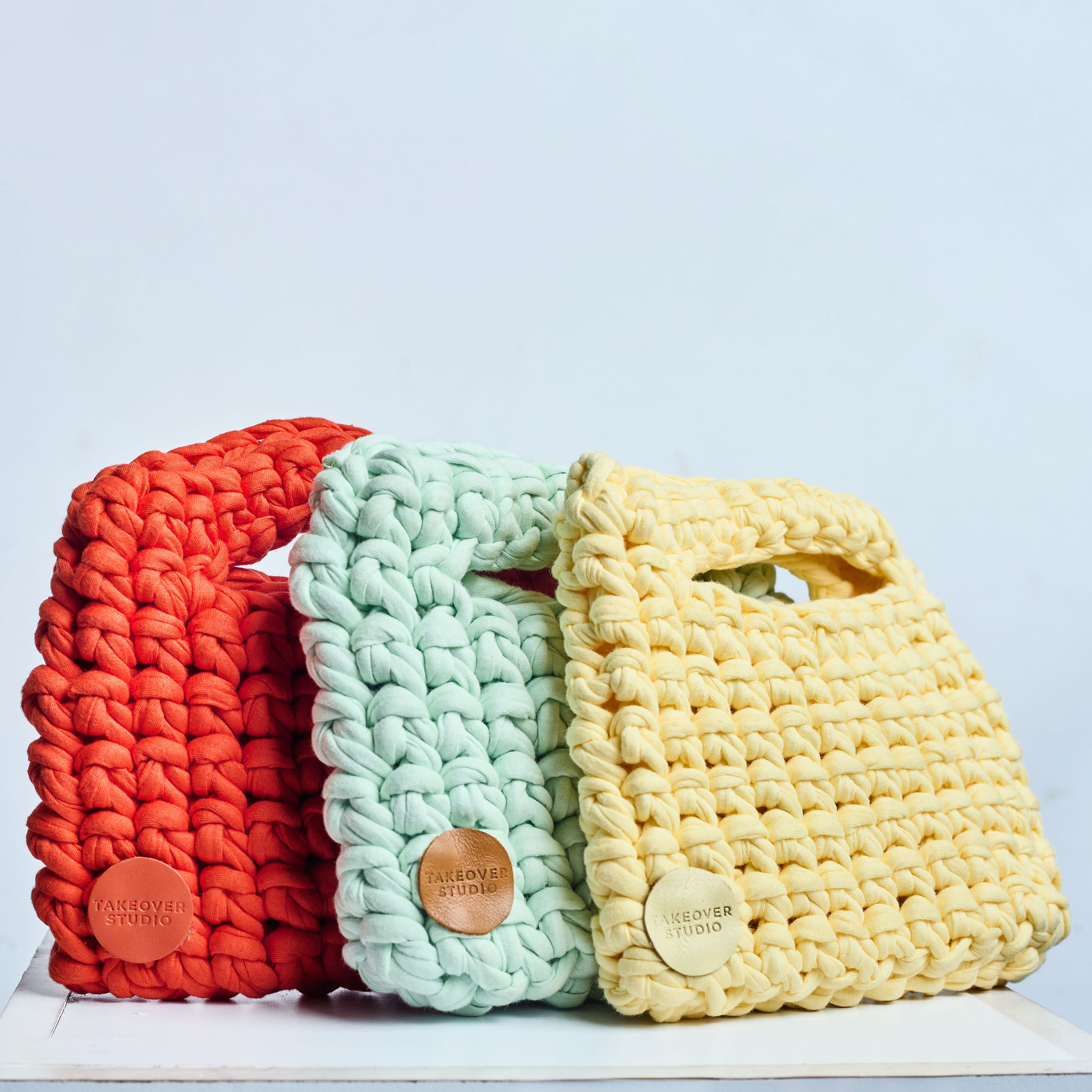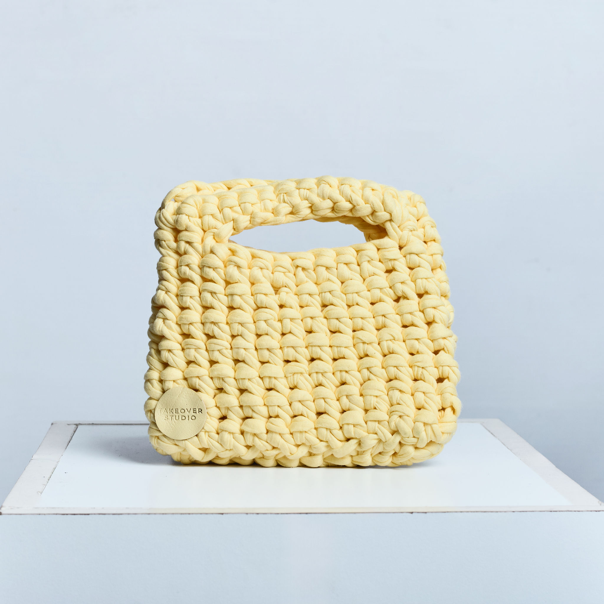 Sweet and sunny, the Mini Butter Yellow Muse is a compact pouch handcrafted from recycled cotton yarn. Designed for small essentials like lip balm, coins, or earphones, it’s the perfect blend of function and sustainable style.